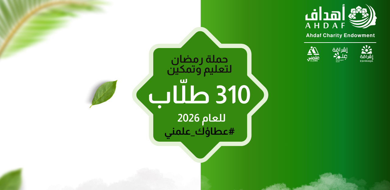 بمناسبة حلول شهر رمضان المبارك، يدعوكم وقف أهداف الخيري لأن تكونوا جزءًا من قصة تغيير حقيقية من خلال حملة عطاؤك علّمني.